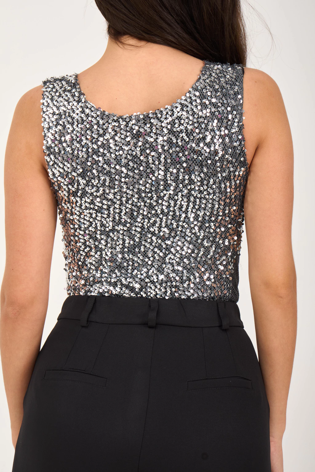 Este body de lentejuelas es ideal para destacar en tus looks de noche o eventos especiales.